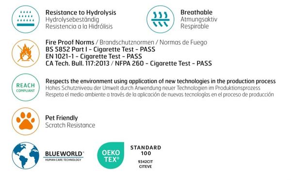 - Độ mài mòn: >40.000 lần cọ xát không gây sờn (EN ISO 12947-1,2)