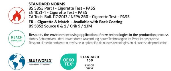- Độ mài mòn: >35.000 lần cọ xát không gây sờn (EN ISO 12947-1,2)